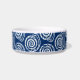 Boule d'animaux dans un motif d'impression en bloc, basé sur un coquillage en spirale, en blanc sur un arrière - plan bleu cobalt