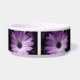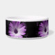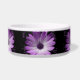 Ce magnifique bol d'animal de compagnie présente une photo magnifiquement détaillée d'une fleur de marguerite africaine. La photo a été numériquement modifiée, ce qui donne une jolie fleur de couleur violet avec différentes nuances de violet sur les pétales et un centre violet foncé.