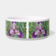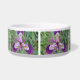 Ce magnifique bol d'animal de compagnie.présente une photo d'un Iris violet. La photo a été prise en utilisant la macro photographie pour un résultat détaillé. Cette belle fleur fleurit chaque année dans mon étang de jardin et me fait toujours sourire.