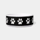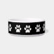 Bol pour petit chien avec empreintes de pattes blanches sur fond noir et un espace pour ajouter le nom de votre chien, ce qui en fait un design de bol pour animal de compagnie élégant. Utilisez le vôtre comme bol pour l'eau, la nourriture ou comme récipient pour toutes les friandises pour chiens.