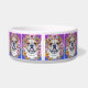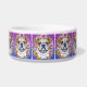 Un bulldog en pop art mignon entouré de fleurs fantaisistes violettes, roses, bleues et jaunes.