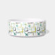 Ce bol pour animal de compagnie moderne de milieu de siècle présente des carrés abstraits, des explosions d'étoiles et un boomerang dans les couleurs bleu aqua, jaune, vert avocat et le nom de votre animal de compagnie dans une police décontractée bleu aqua. Ajoutez un élément amusant à l'heure du repas de votre animal de compagnie !
