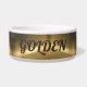 Ce bol pour chien doré a été créé en capturant la réfraction de la lumière à partir d'un cristal. C'est presque métallisé faux, et classe, élégant et audacieux. Ce bol pour animaux de compagnie est personnalisable pour Personnaliser avec le nom de votre chien.