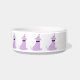 Chien mauve caricaturé Cochon Chien Bowl. Un mignon chien de dessin animé violet sur un arrière - plan blanc. Monogramme, Cette conception séduira les amoureux de les chiens.