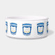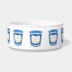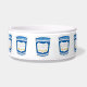 Il présente une illustration originale d'une tasse de café en papier à diner grec bleu classique, avec NOUS SOMMES HEUREUX DE VOUS SERVIR dans une police amusante.