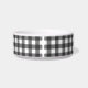 Cute rustic custom pet dog or cat bowl features farmhouse buffalo plaid check patterned background in black and white colors with double border.