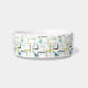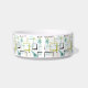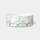 Ce bol pour animaux de compagnie moderne du milieu du siècle présente des carrés abstraits, des explosions d'étoiles et un boomerang dans les couleurs bleu aqua, jaune, vert avocat et le nom de votre animal de compagnie dans une police décontractée bleu aqua. Ajoutez un élément amusant à l'heure du repas de votre animal de compagnie !