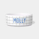 Bol pour animal de compagnie personnalisable dans un motif de grille géométrique moderne dans une guerre des couleurs classique bleu, blanc et noir. Personnalisé selon vos besoins pour assurer un cadeau fabuleux et un accessoire mignon. Idéal pour le propriétaire d'animaux dans votre vie.