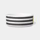 L'appétit des os ! Le Gold Bone Pet Bowl a des rayures noires et blanches en onyx classiques et au centre un os en or métallique. Ce magnifique bol en céramique est de deux tailles et a de nombreuses rayures de couleur branchée à choisir dans mon magasin. Les détails en or métallique sont simulés dans l'oeuvre.