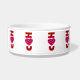 Vous pouvez admirer mon dessin de la Saint-Valentin et le dessin romantique que j'appelle, "I Love You", d'un coeur rayé rouge et rose, ajouté à ce bol en céramique. Vous pouvez commander ce bol en céramique pour animaux de compagnie en moyen et grand.