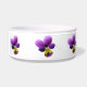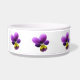 Ce magnifique bol d'animal de compagnie présente une photo très détaillée d'une fleur de sansy sauvage, prise en macro photographie. La fleur est violette avec un centre jaune.