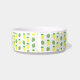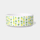 Ce magnifique bol à chien est orné d'un motif de fruits tropicaux à l'ananas jaune avec des toupies vertes et de jolis feuilles de palmiers vert pâle. Idéal pour un Mariage à thème estival ou tropical. Il y a un cercle jaune avec des motifs blancs marbrés qui contient du texte personnalisable pour vous permettre de personnaliser cette conception.