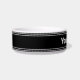 Ce bol d'animal de compagnie noir et blanc a un texte d'affichage blanc au centre. Vous pouvez modifier le texte en un nom ou un message.