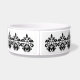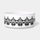 Un élégant motif damassé en noir et blanc sur un bol de nourriture pour chien. Ajoutez le nom de votre chien.