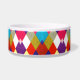 Motif diamant vintage joyeux sur votre choix de bol pour animal de compagnie charmant. Ajoutez une touche de couleur vive et positive à la routine quotidienne de votre 'meilleur ami'. Personnalisable avec votre choix de couleur de fond. Ce bol à motif argyle simplement élégant est sûr d'ajouter une ambiance vintage désinvolte à n'importe quel espace... Que pourriez-vous ou votre chien demander de plus ? Laisse assortie, collier personnalisable (et biscuits) vendus séparément...
