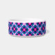 Joli motif de style rétro du milieu du siècle principalement en rose, sarcelle et prune. Le bol pour animaux peut être personnalisé avec le nom de votre chien (ou chat) et correspond au collier bandana pour animaux disponible dans ma boutique.