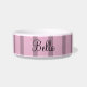 Personnalisé Nom de l'animal Rose Pink Mauve Stripes Bowl avec nom de script élégant.