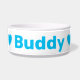 Ce bol en céramique a deux coeurs bleu ciel et peut être personnalisé avec le nom de votre chien. Choisissez le style et la couleur de police que vous préférez au lieu du bleu affiché ici. Vous pouvez déplacer le coeur autour et ajuster leur taille également pour faire ce plat de chien juste pour votre chien. Fait un cadeau unique et amusant pour n'importe quel parent de chien!