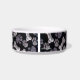 Un arrière - plan noir avec les pattes et les biscuits de chien brillants tout autour. Faites un grand plat de nourriture ou d'eau.
