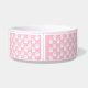 Silhouette d'os de chien rose avec une zone de texte personnalisable pour le nom de l'animal ou d'autres textes personnalisés tels que "nourriture" ou "eau", par exemple. La couleur de fond est rose clair avec un motif d'empreintes de pattes de chien blanches. Rendez l'espace de repas de votre animal chic tout en ajoutant une touche de couleur rose à votre espace.