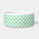 Ce bol pour animal de compagnie présente un motif d'empreintes de pattes de chien blanches sur fond vert menthe. Il y a également une bannière marron avec une zone de texte personnalisable pour le nom de votre animal. La couleur beige peut être changée en n'importe quelle autre couleur sous personnalisation.
