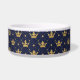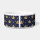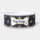 Give your pet the royal treatment with this elegant personalized dog bowl! Featuring a rich navy background decorated with gold crowns and flourishes, this stylish bowl adds a touch of luxury to any feeding area. The center includes a customizable bone-shaped name plate so you can add your pet’s name for a truly unique touch.