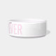 Bubblegum pink chat bowl avec "BEST CAT EVER" et le nom de votre chat customisé dans un script de calligraphie chic et élégant police texte superposition. Entrez le texte personnalisé que vous souhaitez pour l'arrière - plan et la couche supérieure du texte pour créer votre propre nourriture pour animaux de compagnie en céramique rose personnalisée ou bol d'eau. Voir notre collection de bols de coordination et obtenir un set!