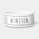 Personnalisé noir et blanc moderne style de ferme minimaliste mince à bandes multiples nourriture pour animaux de compagnie ou bol d'eau avec votre nom de chat ou de chien imprimé sur le côté. Utilisez l'éditeur de modèle avancé pour modifier les couleurs de police, d'arrière - plan ou de bande pour correspondre à votre décor ou à vos couleurs préférées.