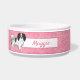 Écuelle Phalène Noir Et Blanc Sur Coeurs Rose Avec Nom