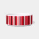 Boule d'animaux de compagnie en blanc avec une impression d'accent dans un motif rayé rouge. Choisissez dans un bol de taille moyenne ou grande. Customisez ce bol et ajoutez du texte ou du travail de conception ou achetez tel quel.