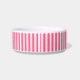 Boule pour animaux de compagnie en blanc avec une impression d'accent dans un dessin à rayures roses. Choisissez dans un bol de taille moyenne ou grande. Customisez ce bol et ajoutez du texte ou du travail de conception ou achetez tel quel.