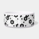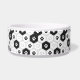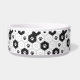 Le bol pour animaux de compagnie est affiché avec une impression de pattes noir et blanc. Choisissez de petite ou grande taille. Customisez cet objet ou achetez tel quel.