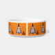 Ce magnifique bol d'animal de compagnie présente l'image art numérique d'une mignonne sorcière de rat gris avec oreilles roses, nez, pieds et queue. Le rat porte un casquette pointu noir avec une boucle d'or et des étoiles violettes tout autour. Les rats portent aussi un manteau noir couvert d'étoiles violettes. A côté du rat, un balai brun fait de brindilles. Ce rat est habillé prêt pour une fête d'Halloween.