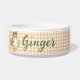 Ce joli bol présente un Sheltie Laurel dans une couronne de branche de laurier sur fond gingham jaune. Les couleurs incluent le marron, le beige, le vert olive et le jaune moutarde. Vous pouvez personnaliser avec le nom de votre animal de compagnie.