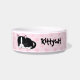 L'adorable bol de chat personnalisé présente une jolie illustration d'un chat noir et blanc faisant une sieste sur un mignon arrière - plan empreinte de patte bleu. Personnalisez avec le nom ou le texte de votre animal de compagnie. Coincé