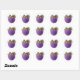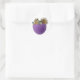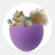 Un écureuil est assis dans une coquille d'oeuf pourpre tenant une petite fleur bleue. Utilisez ces autocollants de printemps pour Pâques.