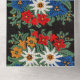 An image of a floral pattern with a needlework look of Edelweiss white Alpine flowers of Europe on your product. Blue, red, yellow, and white colours. Leontopodium alpinum of Switzerland, Germany, and Austria.