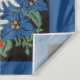 An image of a floral pattern with a needlework look of Edelweiss white Alpine flowers of Europe on your product. Blue, red, yellow, and white colours. Leontopodium alpinum of Switzerland, Germany, and Austria.