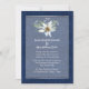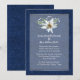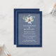 Elegant wedding invitation, with a European influence, done in a blue-on-blue damask with graphics of a silver framed text area and a single white Edelweiss bloom, at the top. Personalize the white custom text to suit your needs.