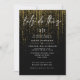 Bold edgy yellow gold sparkly garland cascades down the page, in handwritten calligraphy is "let's do this" - couple's initials at the top - the rest of the text is simple and clean - all on a black background. Elegant wedding stationery.