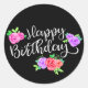 Edgy Roses & Modern Stripes Trendy Happy Birthday Classic Round Sticker