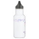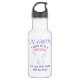 Water bottle with a unicorn drawing. A fluffy cloud at the end of a rainbow in the background. Pink and purple watercolor confetti decorate the top border. The text says: I want to be a Unicorn so I can stab idiots with my head. Funny, edgy and cute.