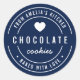 Round Modern Bold "Baked with love" sticker featuring a heart and double border in white against a background color that is editable (click customize and change background color). It's perfect for labeling what you've baked.