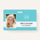 Photo name badge with an editable background colour (click customize to change) and which you can also add your logo.