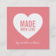 Modern minimalist business card with the word "Made with Love" in bold font against a white heart and a stylish script for your name or store name. This versatile business card has an editable background colour (change it to whatever you like) and change font colour to match as well which you can access by clicking "customize" button. This card also works well as a gift tag, favour tag or product tag.