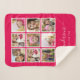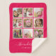 Blanket with 9 square photos arranged in a grid layout each with a white border around them and all against an editable background colour (click customize to change background colour). You can also add your family name in a stylish calligraphy font and the year established. Perfect for wedding gifts, family keepsakes, mother's day gifts, etc.