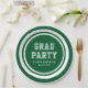 Varsity style Graduation Party paper plate featuring white stripes and the words "Grad Party" against an editable background colour (click customize to change).