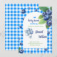 This is the best choice for your special event! Sweet berry is on his way :) Celebrate the sweetest arrival with this charming “Berry Sweet” baby shower invitation. Featuring a classic blue gingham background, watercolor blueberries, lush green leaves, and festive balloons, this design perfectly combines rustic charm with playful elegance.