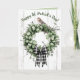 This beautiful card features an illustration of a clover leaf wreath and bow with a bird on top. On the front and on the inside are editable messages which you can change with your own greetings. You can also change the font size, style and colour. The colours on the inside and on the back can be changed, too.