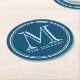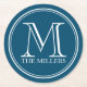 Modern Classic Name Monogram round coaster featuring a classic white round border with an editable background colour (click customize it to access). This personalized round monogrammed coaster looks great for your home, diner or bar.